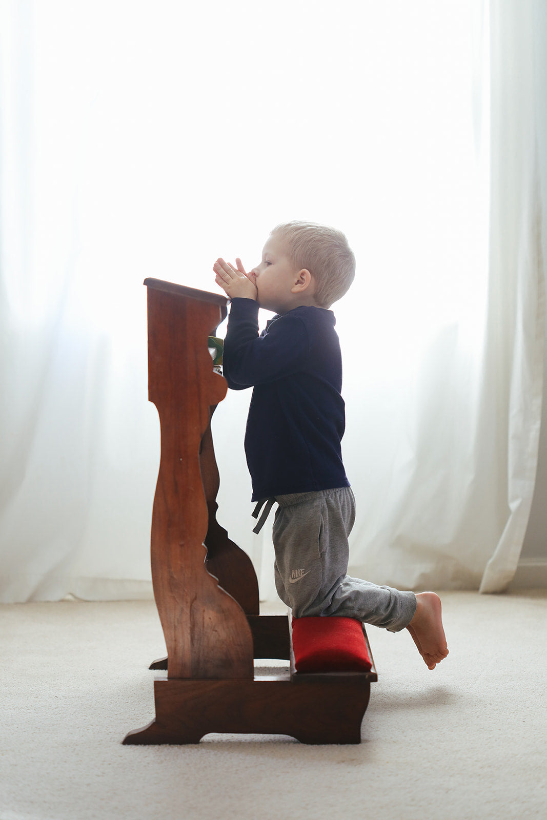 Can you drape a blanket across the chair to invite you into rest with Christ? Can you hang a crucifix, icon, or other holy image nearby so you can contemplate it during your prayer?